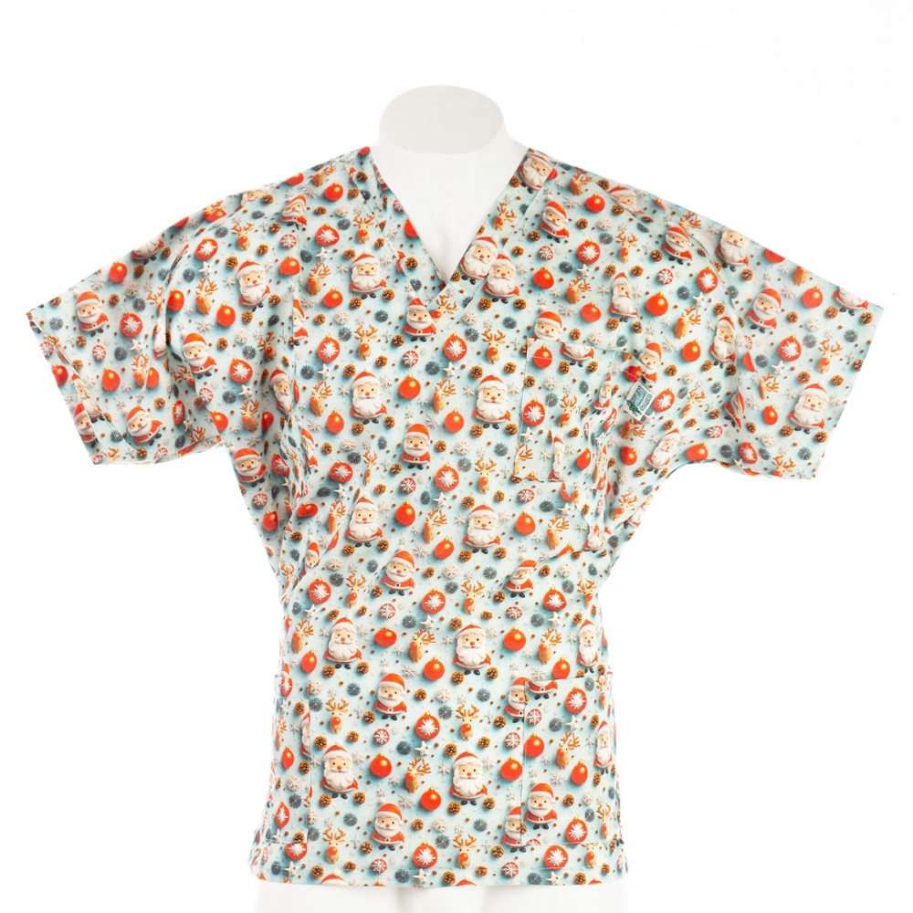3D Father Christmas -   Short Sleeve Scrub Top -  100% Cotton