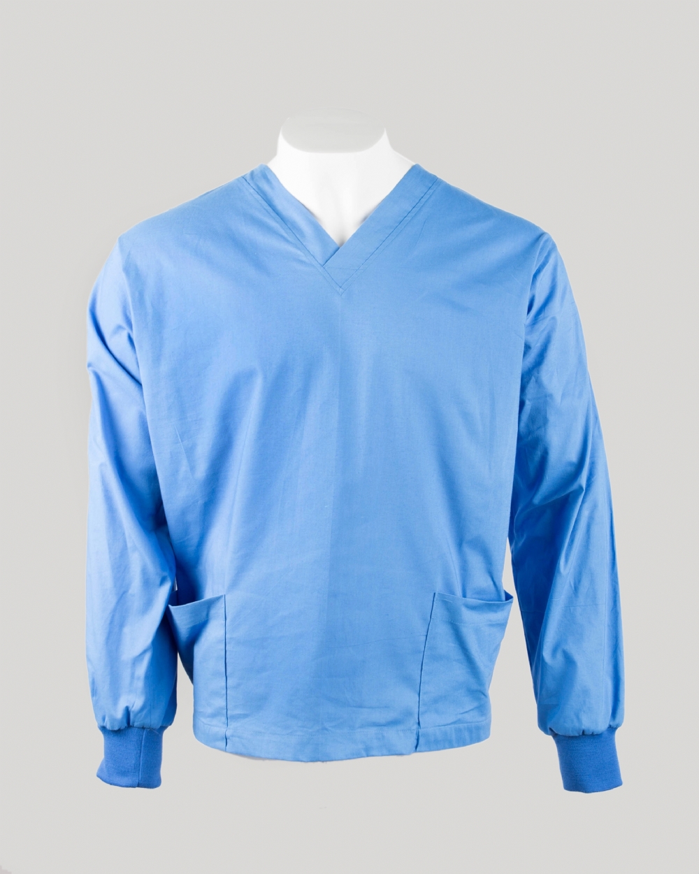 • Hospital Blue Long Sleeve Scrub Top Velcro Cuff 100% Cotton
