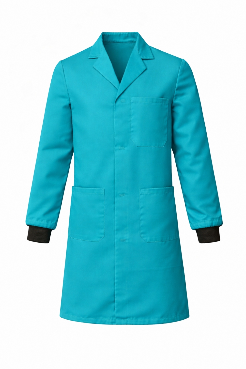 Lab Coat Stud Fastening Rib Cuff - 100% Cotton - Kingfisher