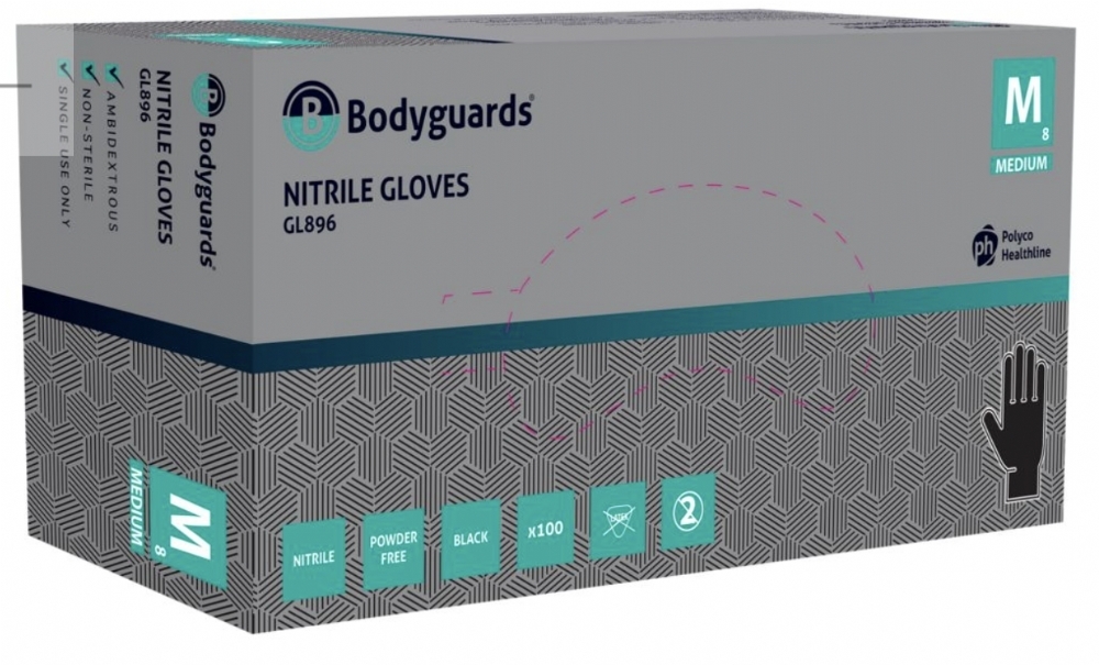 Polyco Healthline Bodyguards GL896 Black Nitrile Powder-Free Disposable Gloves – Latex Free Industrial PPE