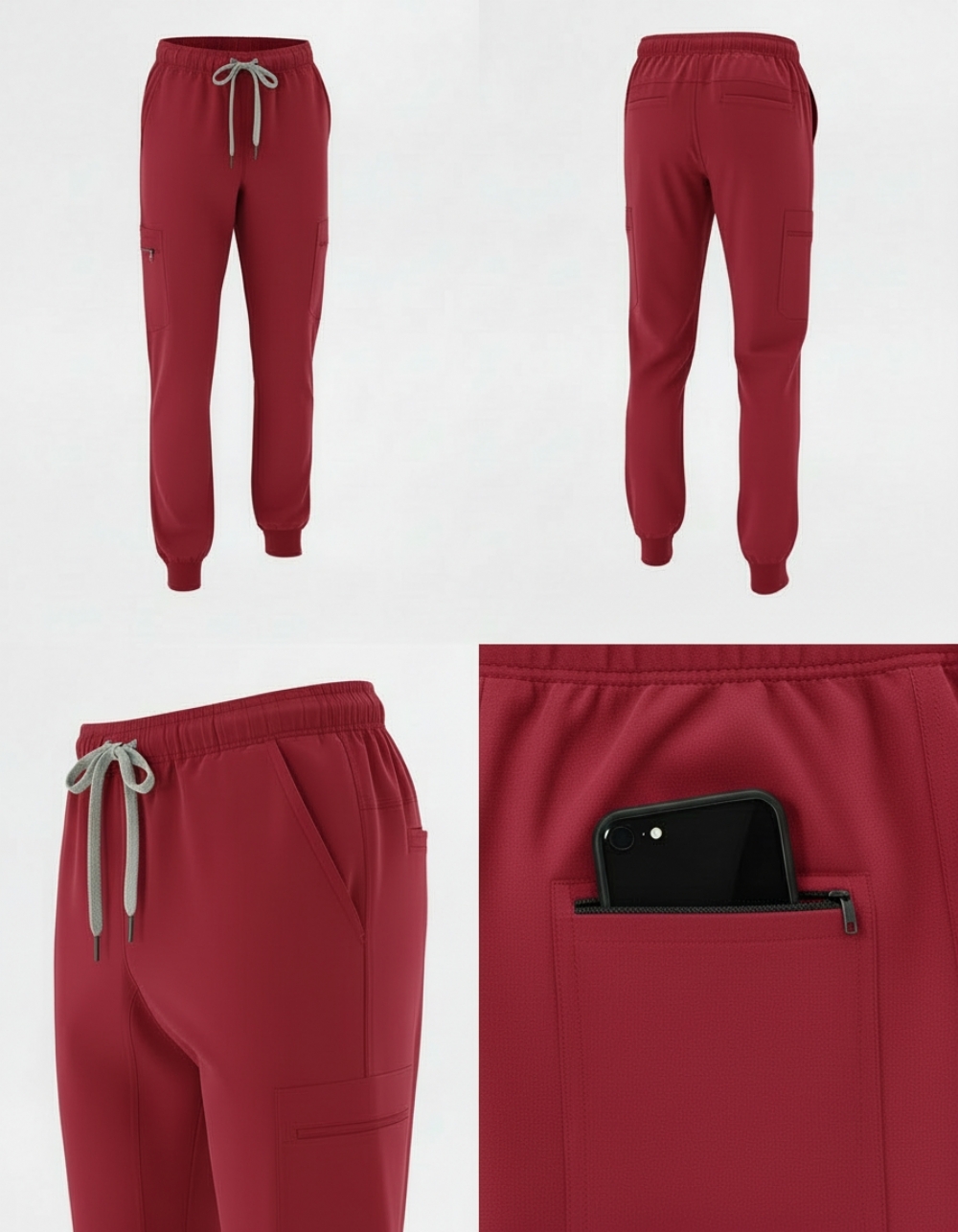 Red 100% Cotton Combat Scrub Trousers with Phone Pockets