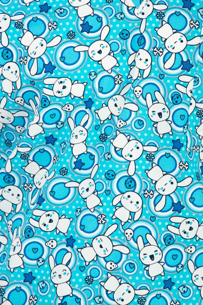 Blue Jumping Rabbits Short Sleeve Scrub Top 100% Cotton