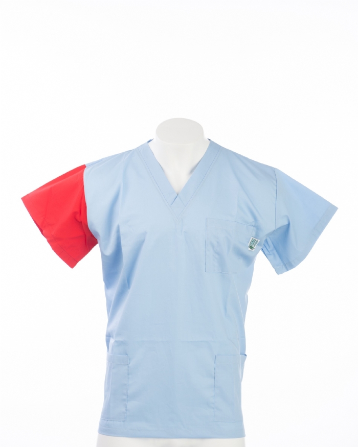 Red Sleeve Colour Coded Short Sleeve Scrub Top 100% Cotton
