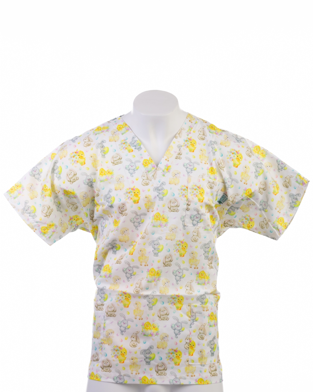 Springtime Bunny & Chick Easter Scrub Top – 100% Cotton – Unisex – Short Sleeve – V-Neck Springtime Bunny & Chick Easter Scrub Top – 100% Cotton – Unisex – Short Sleeve – V-Neck